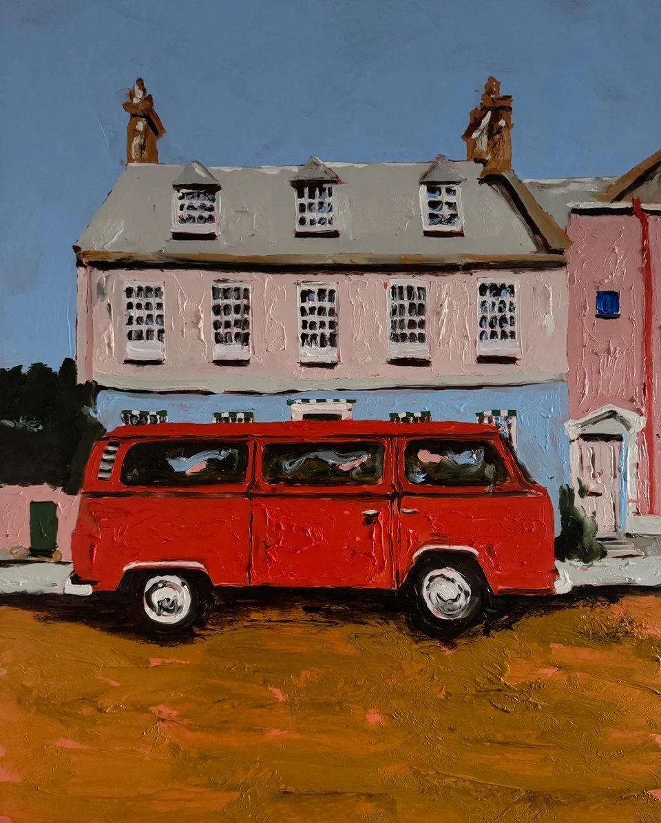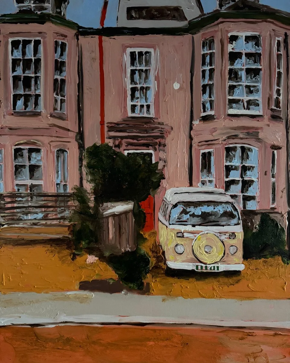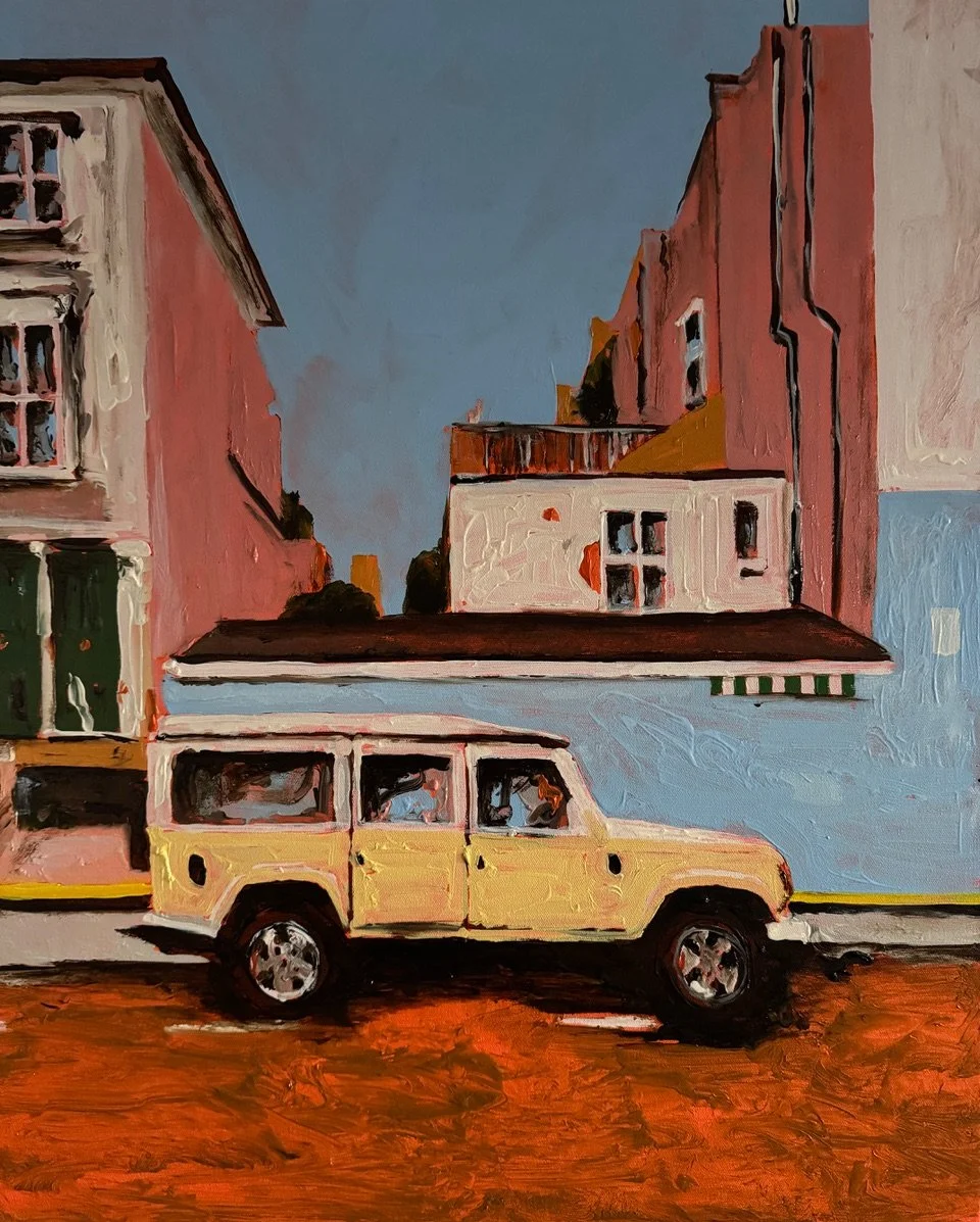 Brenton is an emerging visual artist whose practice explores notions of orientation, personal narrative and opacity through the subjective lens of his queer identity. He also explores the absence of belonging to place and finding his bearings in paint. Brenton investigates these themes through a variety of consistent motifs, like stripes, garments, foreign urban environments and vintage cars. His research, writing and painterly methods have focused on subversion and distortion, in relation to Australian heteronormative culture. His practice also explores the right to opacity in contemporary visual art.