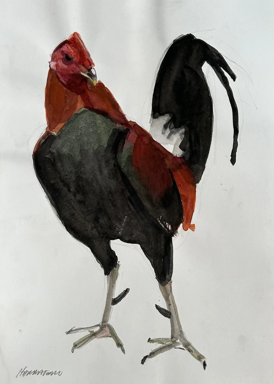 “ These are a few examples of many drawn at the Royal Adelaide Show over several years – where animals in pens make perfect models. Robert would usually head down to sit amongst the dairy cows and Alison perch in the poultry pavilion. They would meet for lunch at the wood chopping.”